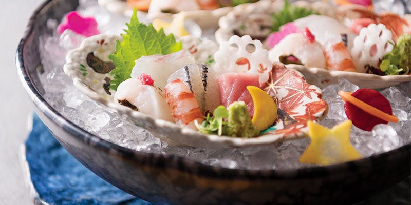毎朝、市場から獲れたての魚を仕入れ、本格和食に調理しております。お祝いのお席においては、その場にふさわしい見た目も華やかな姿造里を以て、おもてなしさせていただております。その他にも結納やお食い初め、長寿祝いにもご対応しています。様々なシーンで思い出に残るお食事を大切な人とともにご堪能ください。