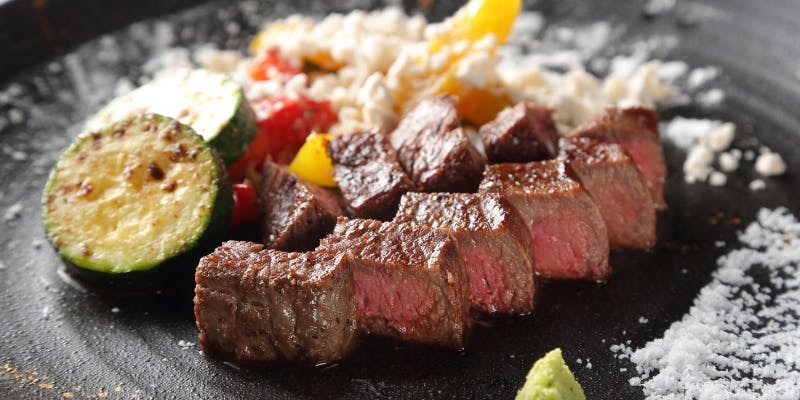 黒毛和牛の中でも希少部位をご用意いたしました。目の前で行われる鉄板焼きライブと共に黒毛和牛希少部位のステーキやその他こだわったお料理の数々を是非ご堪能ください。 ディナー 12,705円