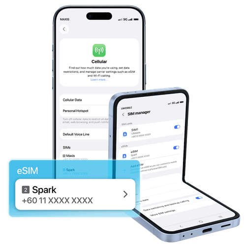 eSIM (embedded SIM) is a built-in digital SIM that lets you activate a mobile plan in Malaysia without using a physical SIM card.
