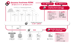 インターネット接続, UTM, ロードバランサー, プロキシ, DNS等, インターネット接続に必要不可欠な機能をパッケージ(以下、セル)として提供します。また、NTTコミュニケーションズのNWサービスと連携し、DC・オフィス拠点(docomo business RINK、Arcstar UniversalOne)、リモート環境(Flexible Remote Access)、各種クラウドサービス(Flexible InterConnect)等、あらゆる拠点からのインターネットアクセスをセキュアかつ柔軟に実現します。