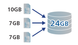複数回線の月次容量を合算してグループ全体でシェアいただけます。