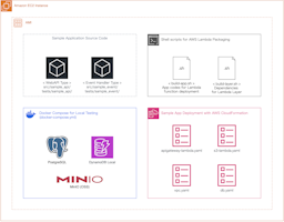 APIベースのアプリとS3を使ったイベントベースのアプリのリファレンス実装を同梱しています。