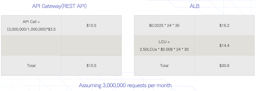 トラフィックが少ないワークロードと大きなワークロードでそれぞれ比較します。同じ様にトラフィックが少ないうちはAPI Gatewayが安いですが、トラフィックが大きくなると高くなる傾向にあることが分かります。