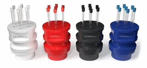The 5 mm NorLoc™ NMR sample tube rack from Norell® is crafted from laboratory-engineered, high-strength, high-modulus biopolymer. This versatile rack functions as both an attractive desktop display and a practical temporary storage solution for NMR samples.