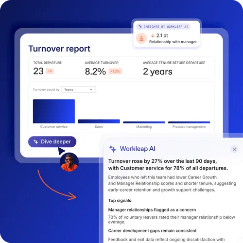 Workleap AI doesn’t just summarize the data it collects through Workleap tools. It pulls your people data from your HRIS and company files to give you the most holistic insights possible.