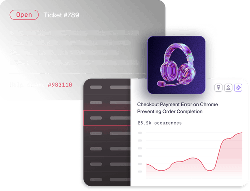 Tickets rarely contain the detail needed for agents to reproduce or escalate effectively. Support teams need session visibility to eliminate guesswork and turn individual complaints into meaningful action.