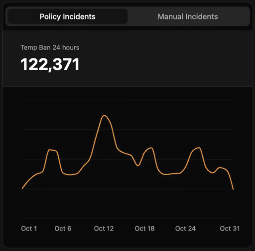 Get an instant snapshot of the percentage of toxic indicents happening in your community.