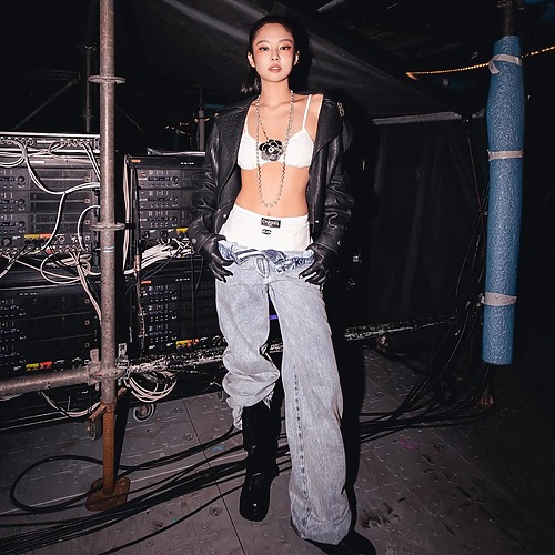 1993 샤넬 룩을 새깅 스타일로 소화한 제니