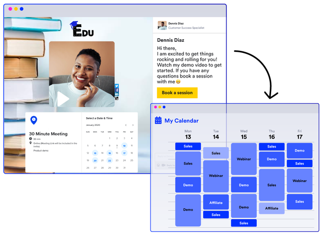 Record quick 1-to-1 welcome videos that stand out from automated emails and add a human touch to your customer onboarding. Add call-to-actions to every video so users can book a demo, ask questions, or take the next step.