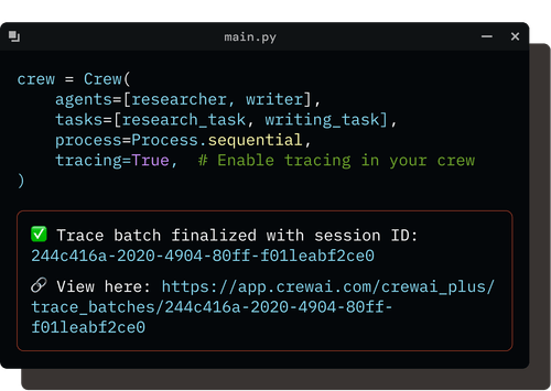 Simply describe an AI agent’s role, goal and backstory to get started. Optionally, you can specify its LLM, enable reasoning and memory, provide it tools and more.