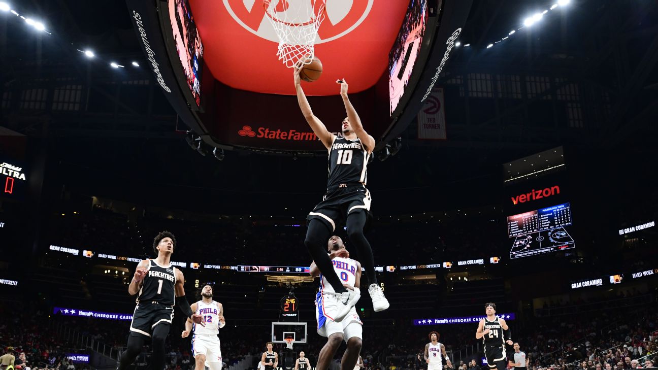 Atlanta sigue en buen momento y de la mano del doble-doble de Jalen Johnson venció a diezmados 76ers