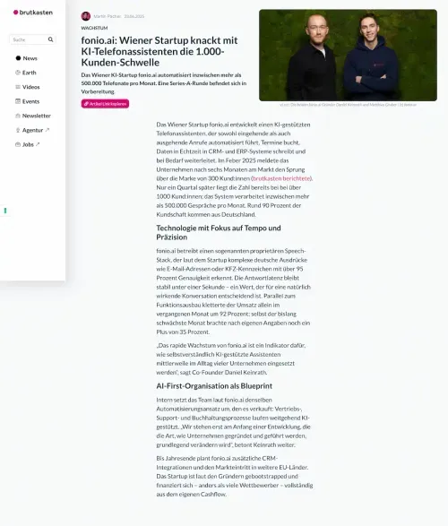 Daniel Keinrath und Matthias Gruber gründeten fonio.ai Mitte 2024, um KMUs mit vielen Anrufen beim Telefonsupport zu unterstützen.