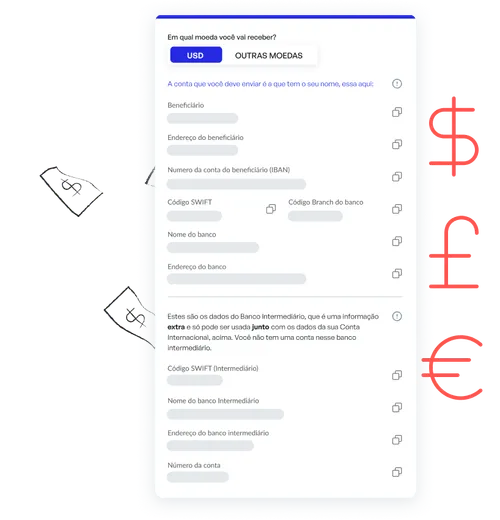 Aqui não tem spread bancário nem taxas escondidas: usamos a cotação do dólar comercial para que você tenha tranquilidade e transparência nas suas transações, como receber em dólar, euro ou outras moedas.