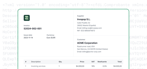 Forget about local invoice requirements. Invopop converts sales into locally-compliant invoices, and reports them to the appropriate tax authority in the right format.