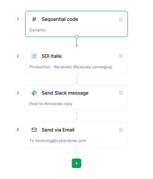 Send PDF invoices that comply with your local fiscal, language, and business needs.