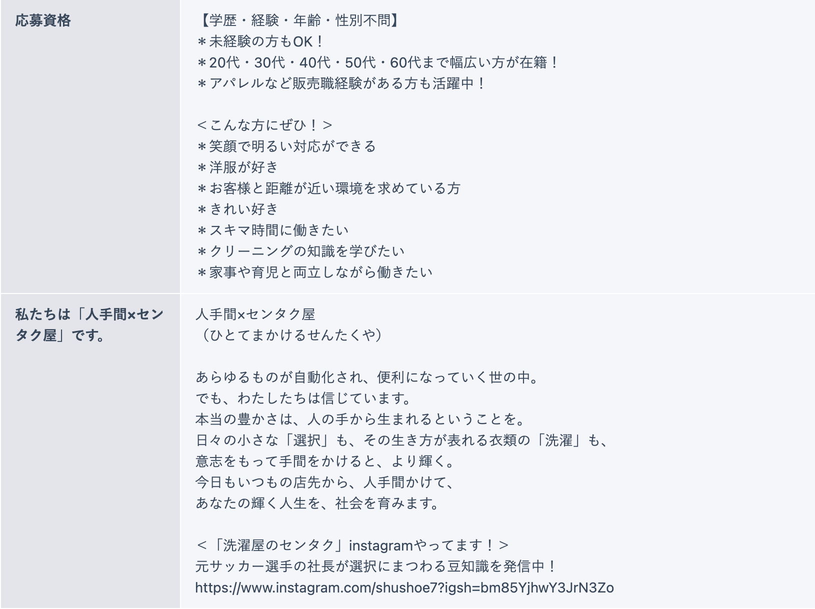 「人手間×センタク屋」の求人原稿作成・広告掲載