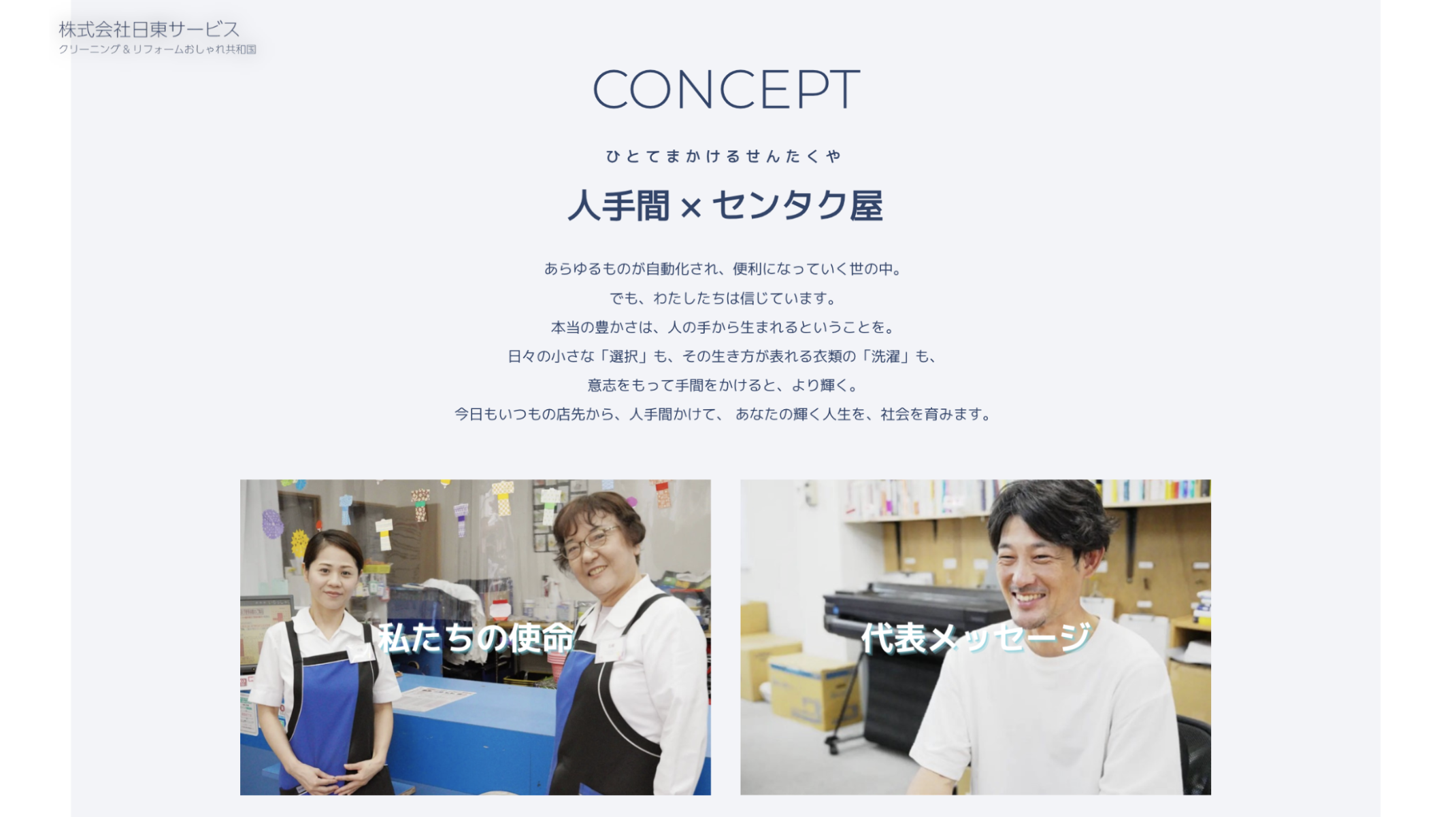 クリーニング業を営むからこそ気づく”洗濯”と”選択”のつながりに着目し、志・義憤・信念を整理。さらにブランドコンセプト「人手間×センタク屋(ひとてまかけるせんたくや)」を言語化しました。これを3〜5年かけて体現するためのブランド方針書を納品すると、榎本社長は「想いがカタチになった」と涙。