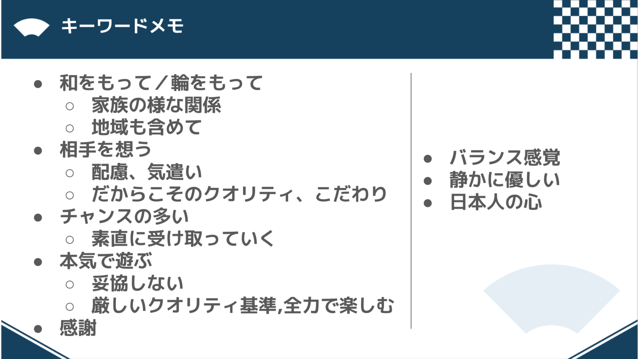 初回のワークショップで強く感じたのは「経営層と現場に大きな差がある」ということ。春華堂が大切にしている「笑顔」という言葉一つでも、それぞれの解釈や視座がズレていました。