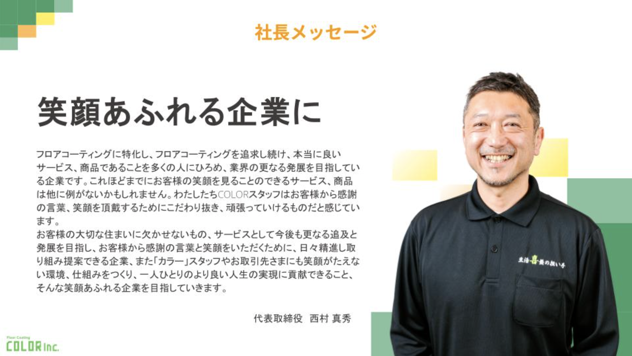 フロアコーティング業界1位を目指し、全国で事業を拡大中の株式会社COLOR。