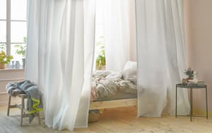 Scopri come creare un letto a baldacchino usando i binari per soffitto VIDGA.