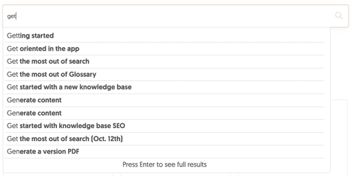 KnowledgeOwl includes fast, typo tolerant, and AI-assisted search designed to help readers find what they need without friction.