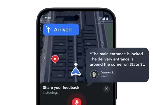Couriers can quickly report issues like closed businesses, inaccurate ETAs, missing building access info, or traffic incidents during deliveries, helping pave the way for smoother deliveries and happier customers.