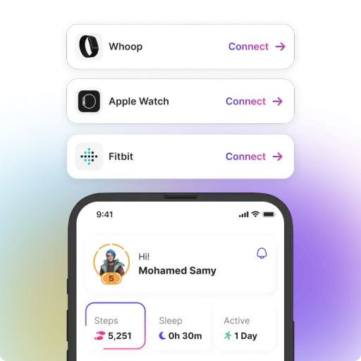 Our app tracks activity, sleep, and wellbeing by connecting to wearables and devices.
