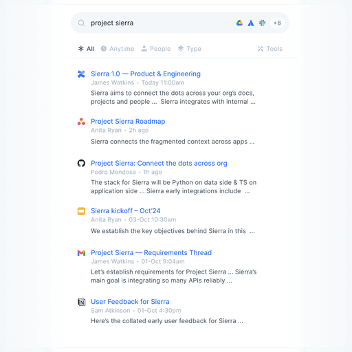 Get the right information, files, and people — from across all your apps. Compliant with your existing permissions.
