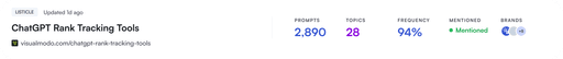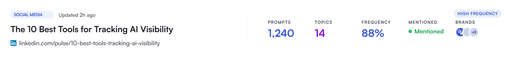 Marketing SaaS is one of the most competitive industries. To prove our process works, we ran it on ourselves. We tracked 300+ prompts across leading LLMs and ranked top 5 in 60% of them within 90 days.