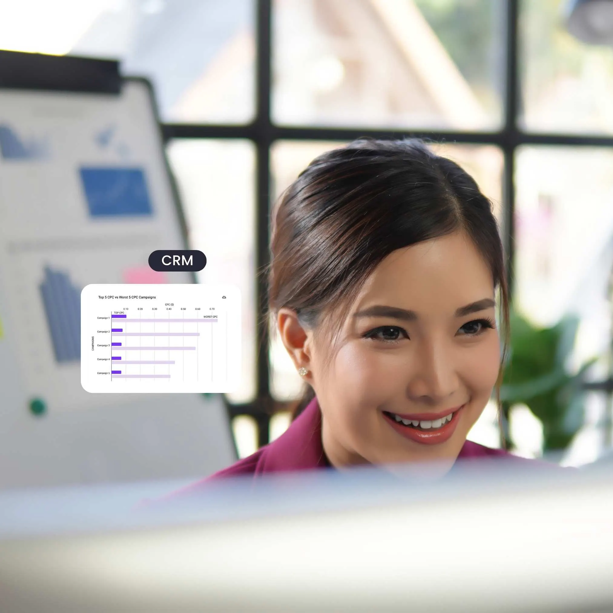 Desde el onboarding hasta la optimización continua, nuestro equipo de Customer Care te guía para que aproveches al máximo la plataforma. Contás con especialistas en marketing digital y herramientas de marketing analytics que trabajan a tu lado para que domines cada funcionalidad y puedas tomar decisiones basadas en datos desde el primer día.