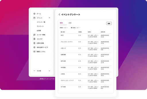 イベントに必要な情報を収集できます。質問を追加し、回答を参加者情報と直接紐づけて管理できます。