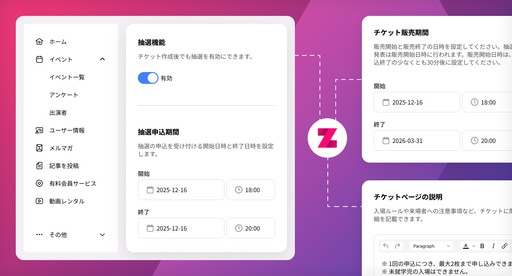 柔軟なチケットタイプと抽選機能でイベントを迅速に作成