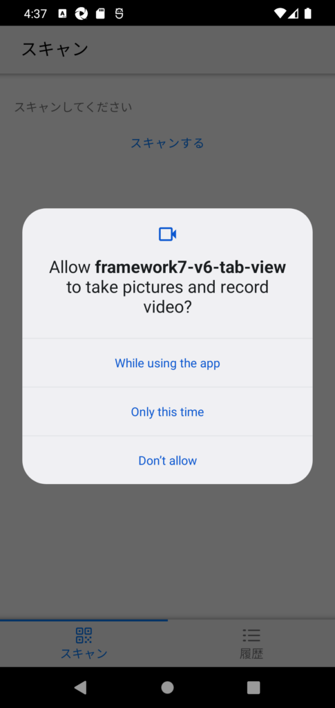 テスト対象のアプリには先日リリースされたバーコードスキャナープラグインのサンプルアプリを使用します。