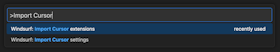 You can easily import your VS Code/Cursor configuration into Windsurf if you decide to do so after the onboarding process. Open the command palette (Mac: ⌘+⇧+P, Windows/Linux: Ctrl+Shift+P) and type in the following: