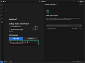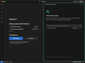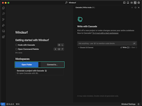 On the right side of the IDE, you’ll notice a new panel called “Cascade”. This is your AI-powered code assistant! You can chat, write code, and run code with Cascade! Learn more about how it works here.