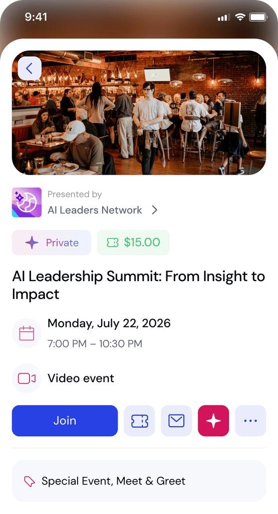 Turn one-time event attendees into engaged, ongoing community members through AI-powered networking, smart follow-ups, and measurable engagement.