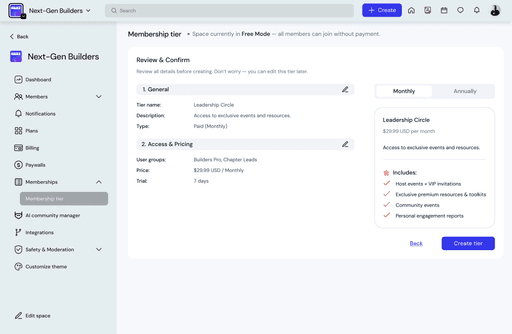 Create membership tiers and access rules that reflect how people participate, not just how they pay or sign up.