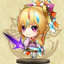 | ◆全ての必殺技が使えるマナを1つ持った状態で戦闘を開始する。 ◆攻撃力(?%)と防御力(?%)と移動速度とクリティカル発生率とクリティカル威力(?%)が上がる。戦場に自身以外の味方がいると効果が(?%)上がり、さらにHPが徐々に(?%)回復する。 ◆攻撃間隔が早くなる。近接通常攻撃の場合、効果が上がる。さらに近接通常攻撃力が上がり、遠距離通常攻撃の弾速が早くなり、敵を貫通するようになり、貫通するたびに威力を(?%)増す。また近接クリティカル攻撃時、クリティカル攻撃が範囲攻撃になり、遠距離クリティカル攻撃時、クリティカル攻撃が5回になり、範囲攻撃になり、盾を破壊する。 《燃凍衣・晴》として世界を越えた力を身にまとう、火焔の剣士。 | |
