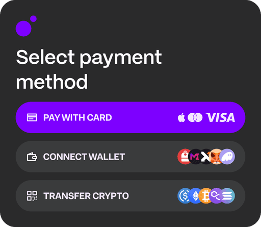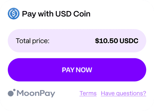 Let non-crypto customers pay their way via seamless onramps. Merchants always receive crypto instantly.
