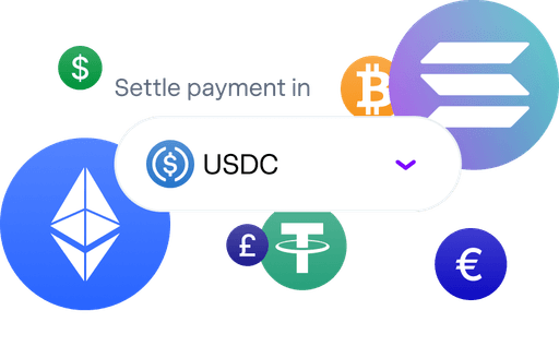 Choose how you get paid. In USDC, any stablecoin or digital asset, or settle automatically to dollars, euros and more.
