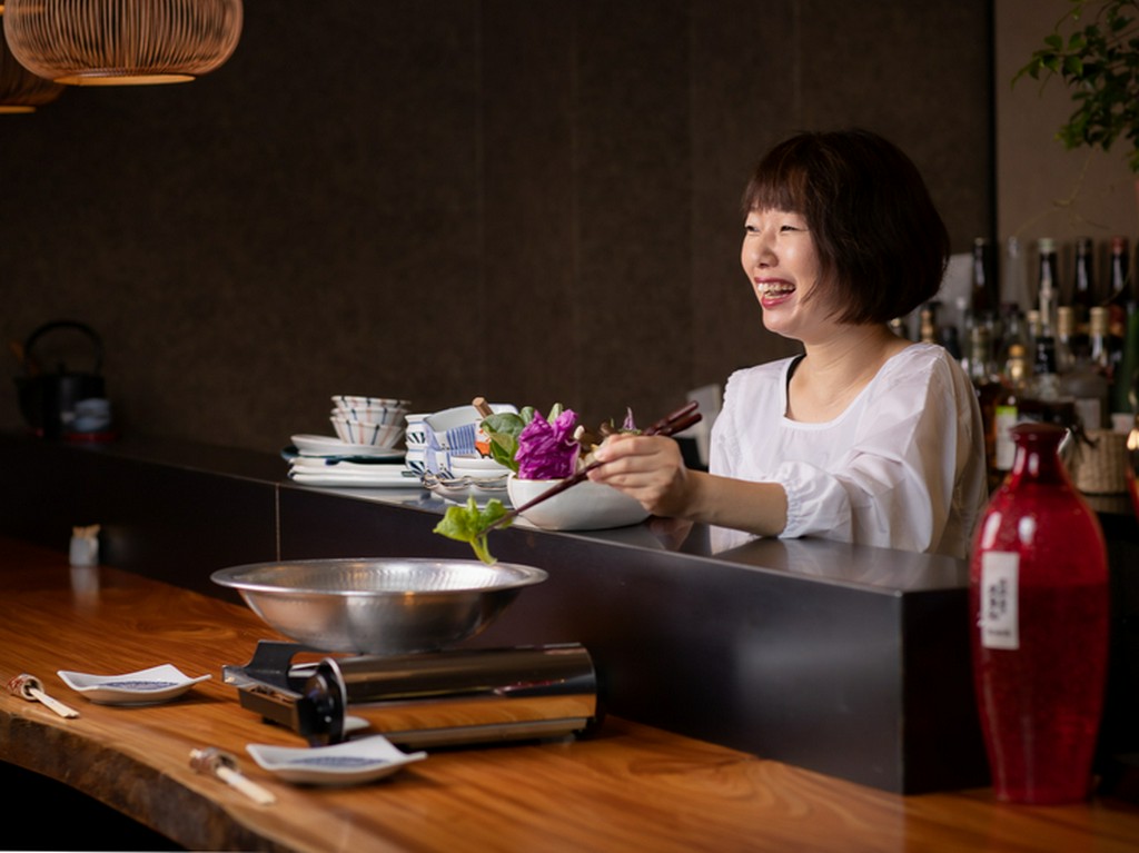 1977年、和歌山県生まれ。持前の明るさと笑顔、軽快なトークでつねに周囲に元気を与える存在だったという。その人柄は人づたいに巡るほどで、専業主婦だった頃、前身の店【あまね】のオーナーの耳にも入り、鶴の一声で入店。【あまね】は閉店となるも、「この名物料理をなくしてはいけない」と『梅鍋』『あまね揚げ』を受け継ぎ、独立。お酒に強く、ときにゲストと一緒にお酒を楽しむことも多いという名物女将だ。
