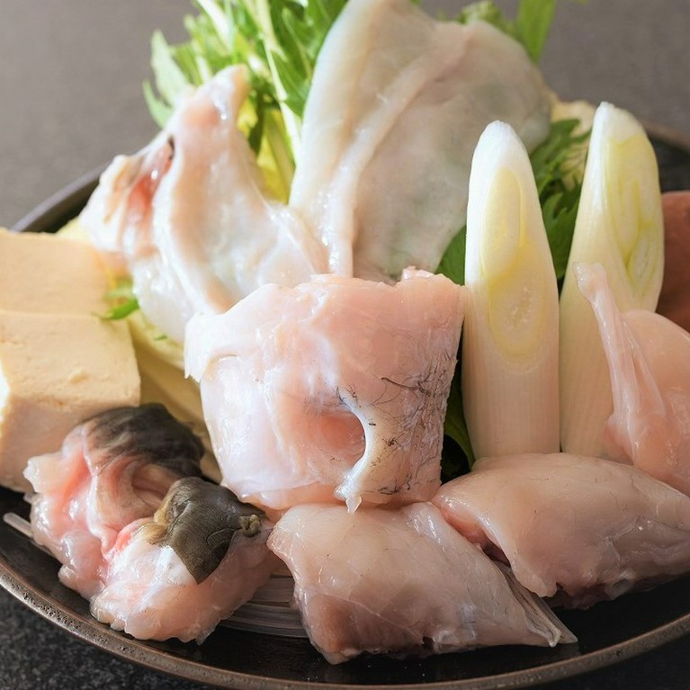 洗練された和モダンな空間で、最高級の「とらふぐ」や「かに」を使った料理を堪能できる【輝月】。新鮮ならではのぷりぷり食感がたまらない『てっちり』をはじめ、『てっさ』や『ふぐ唐揚げ』など、さまざまなふぐ料理が揃っています。夏季限定で味わえる「はも」も見逃せません。コースでも単品料理でも飲み放題を付けられるのがうれしいところ。2階には、2名から最大8名まで使える大小さまざまなタイプの完全個室が用意されています。3階には、最大30名までの座敷も完備。特別な日のデートから接待、家族の記念日や顔合わせなどの改まった席まで、幅広いシチュエーションで利用したいとっておきの日本料理店です。