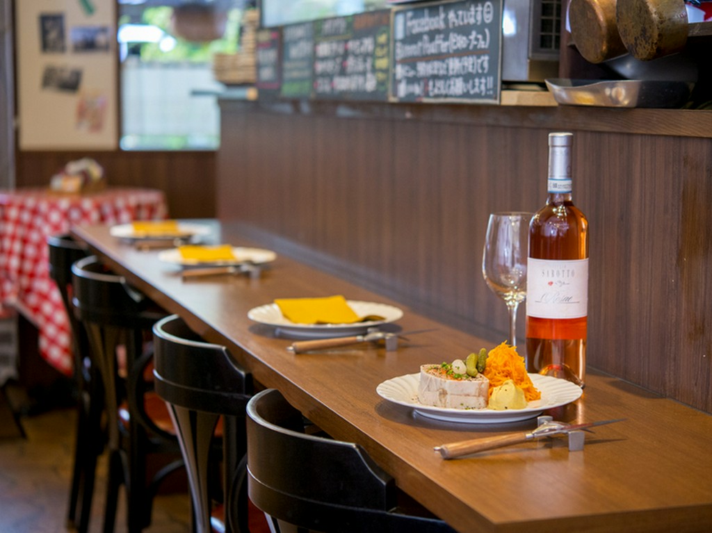 「プーフェ」とは、「驚き、吹き出して笑う」の意味とのこと。手作りにこだわり、ボリュームある逸品を食べながら、種類豊富なワインを楽しめる店です。ワインの種類は驚くほどあり、店内に入ってすぐ右にあるワインセラーから、説明文や値段を確認して来店客がチョイスするシステム。ワインバーではなくあくまでもビストロとのことで、ワインリストはなく、選ぶ基準を明確化してわかりやすく提供しているのが特徴です。また、ワインは良心的な値段で提供され、飲み切らない場合は持ち帰りとなります。店内は気兼ねなく入れる居心地のいい空間です。