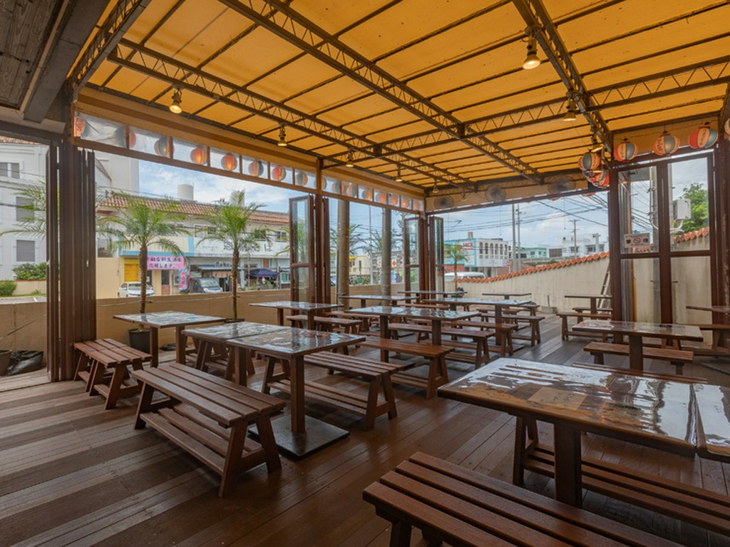 観光客や旅行者に大人気の恩納村にある【純沖縄料理 三線の花】。沖縄でしか獲れない魚を使った『刺身3点盛』や『タコライス』、『ゴーヤチャンプルー』など、沖縄ならではの料理が実に80種類以上! なかなか味わえないオリジナル料理も多数あり、本場の味と雰囲気が楽しめます。ご家族や友人とのお食事はもちろん、貸切宴会も可能。コロナ対策も万全に行っているので安心して訪れることができます。開放感抜群のテラス席はなんと60席も完備! 沖縄の味と景色を心ゆくまで堪能できます。