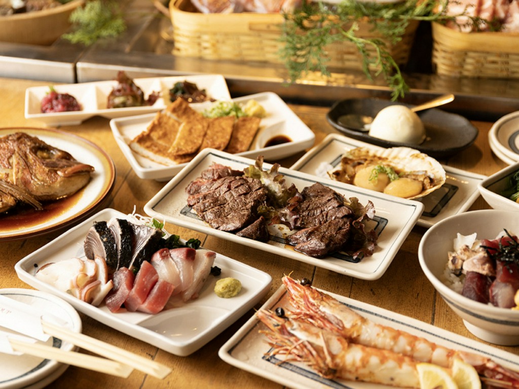 ◆旨い、そして安心価格!! ホタテやサザエなどの新鮮魚介をはじめ、一品、ドリンクメニュー等、99%が350円(税込385円) 中でも名物『活ホタテバター焼』は必食の一品♪ ◆食べ飲み放題 税込5,000円ポッキリ! 自慢の炉ばたで焼き上げる料理や新鮮な魚介を中心とした約50種類以上のメニューが食べ放題♪ ◆北海漁場納屋を感じさせる店内 網場をイメージした北海の漁場納屋の様な外観! 臨場感を楽しめる人気のカウンター席、10名様~宴会個室 最大35名様利用可能な掘りごたつの宴会場などに是非!! ◆個室あり/貸切ご相談 フロア貸切は22~35名様まで対応!! 個室、座敷、人気のカウンター席の貸切もご相談ください♪