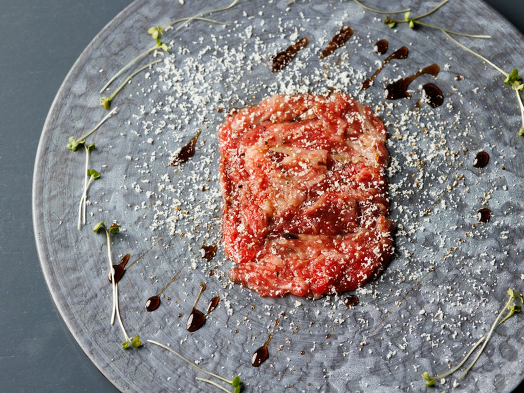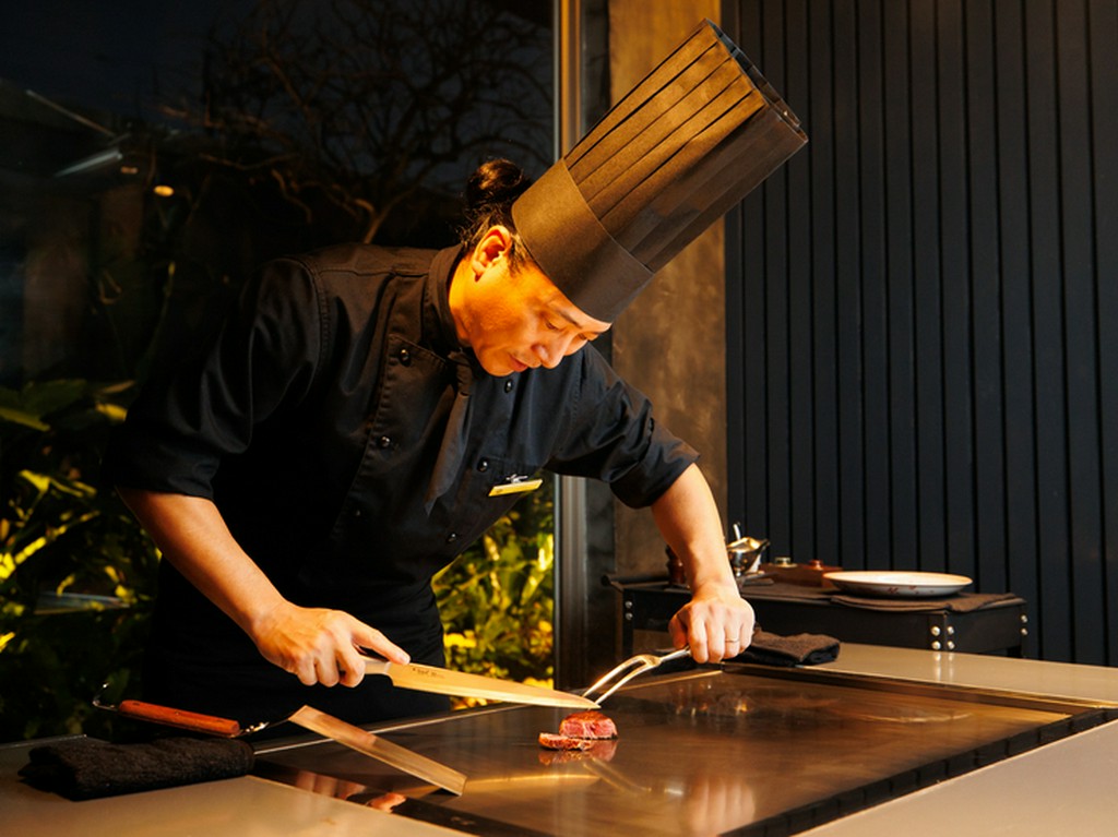 鉄板焼きの花形・ステーキは、佐賀県産黒毛和牛「佐賀牛」を用意。より優れた肉質を追い求め、希少な未経産の雌牛を仕入れており、コースのメインでは牛一頭あたり5.5~6キロほどしか取れないヒレ肉を堪能できます。