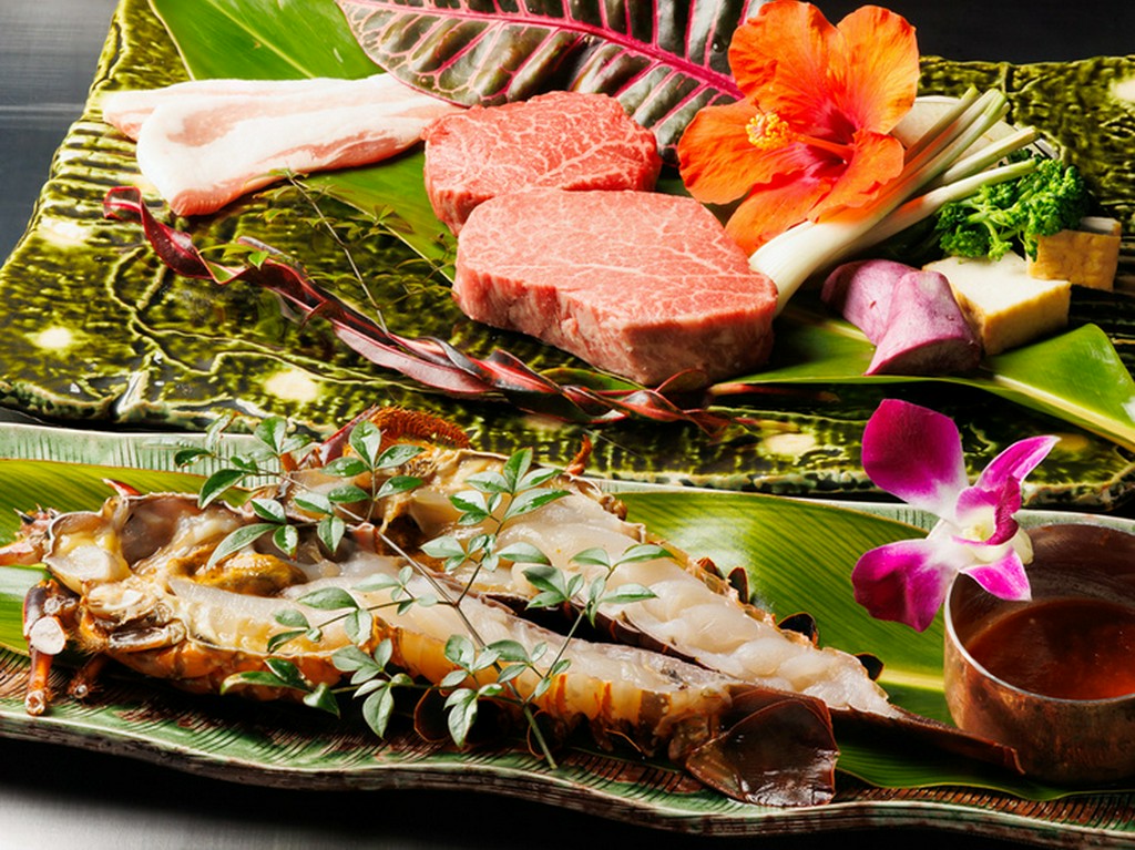 新鮮な海の幸やフレッシュな野菜は、沖縄県産の旬の食材が中心。その季節ならではの彩り豊かな食材で、ゲストの目と舌を魅了してくれます。コースでは沖縄県産黒毛和牛も提供。「佐賀牛」との食べ比べも楽しめます。