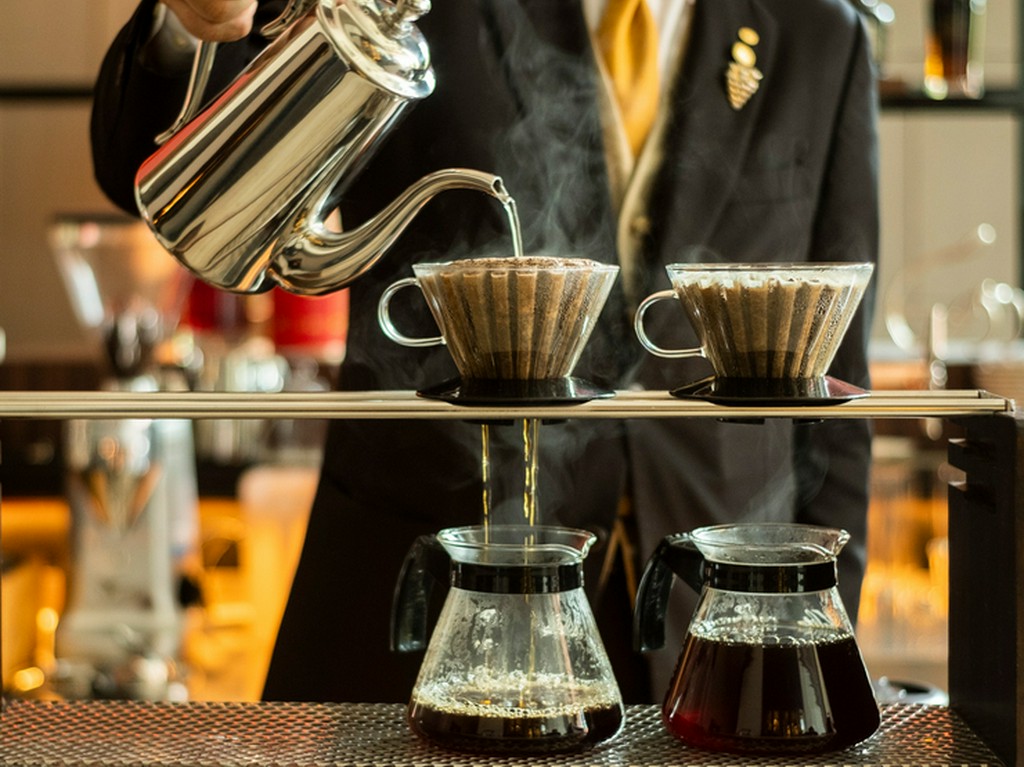 大きな窓と高い吹き抜けの開放的な空間で、ハンドドリップで淹れる香り高いコーヒーとお食事、アフタヌーンティー、そしてお酒に合うアラカルトメニューをお楽しみいただけます。 昼は窓から自然光が降り注ぎ、夜は天井からの柔らかな光がやさしい、心地よいスペースです。お待ち合わせやご商談にもご利用ください。