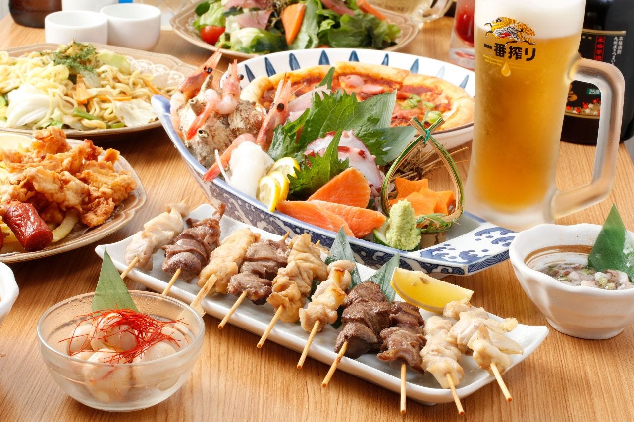 【2時間飲み放題付き】お手軽コース 焼き鳥、唐揚げなど7品が楽しめるカジュアルプラン
