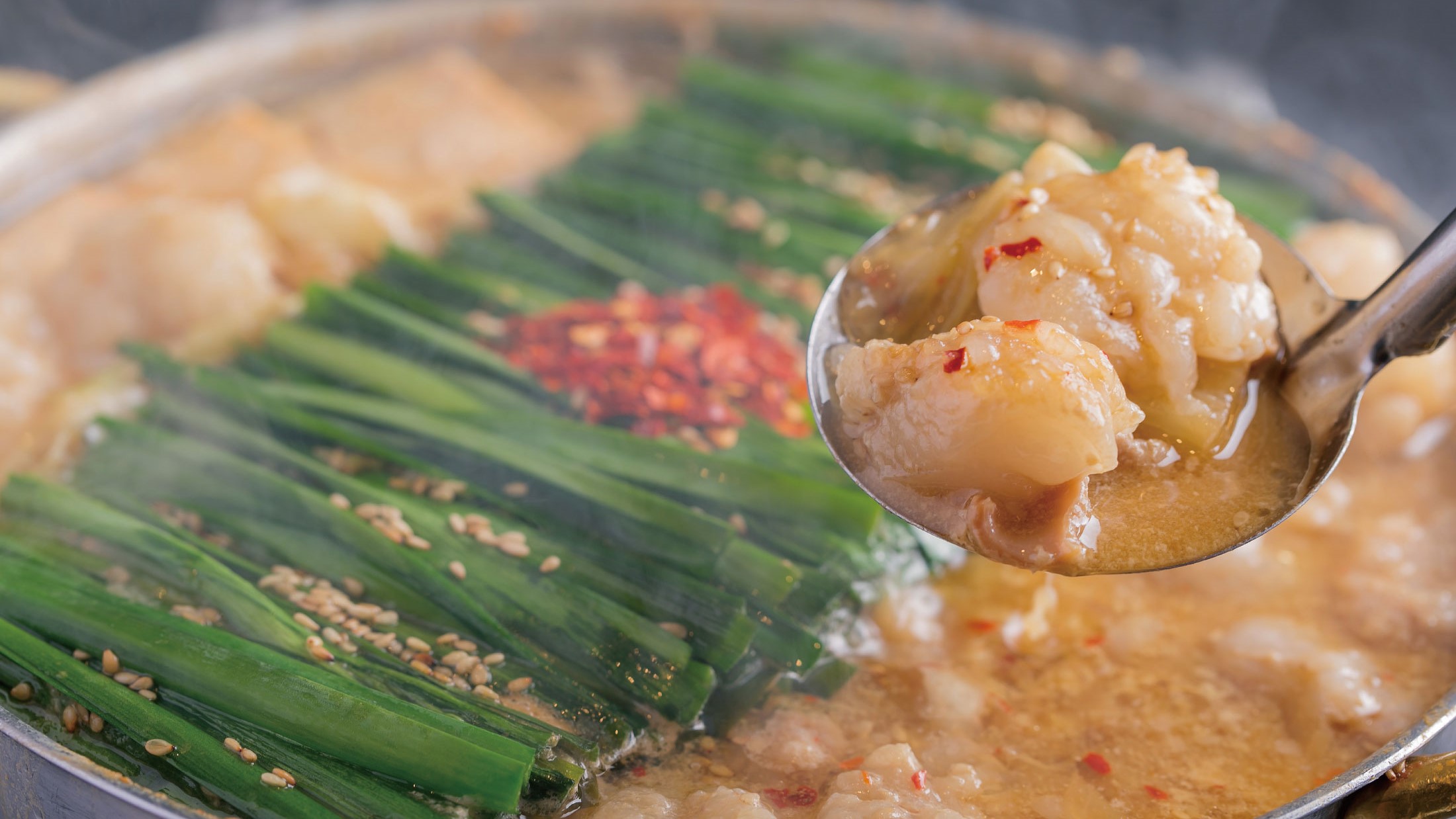 老舗が誇る名物の『もつ鍋』を、オリエンタルなムードが漂う空間でじっくりと堪能